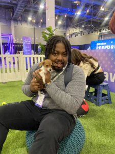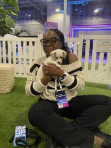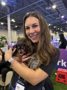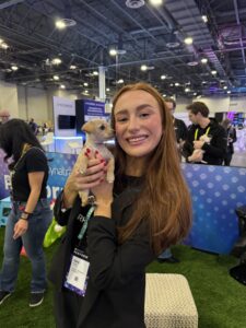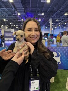 Tucked between the arcade, where attendees chased high scores, and the snowy interactive photo booths, Puppy Love’s puppy lounge became the unofficial recharge station of the conference. People wandered in for a quick look and stayed for five minutes of cuddles, soft fur, and what we like to call puppy breath kisses. It turned into the place you went when your brain needed a reset and your heart needed a little lift.