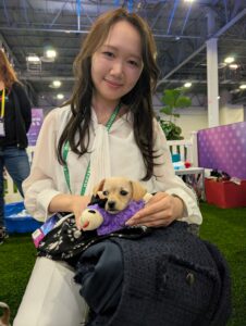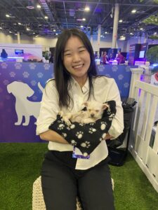 She was absolutely right. The booth became a nonstop hub of joy, with a steady stream of attendees lining up for their turn in the puppy lounge.
