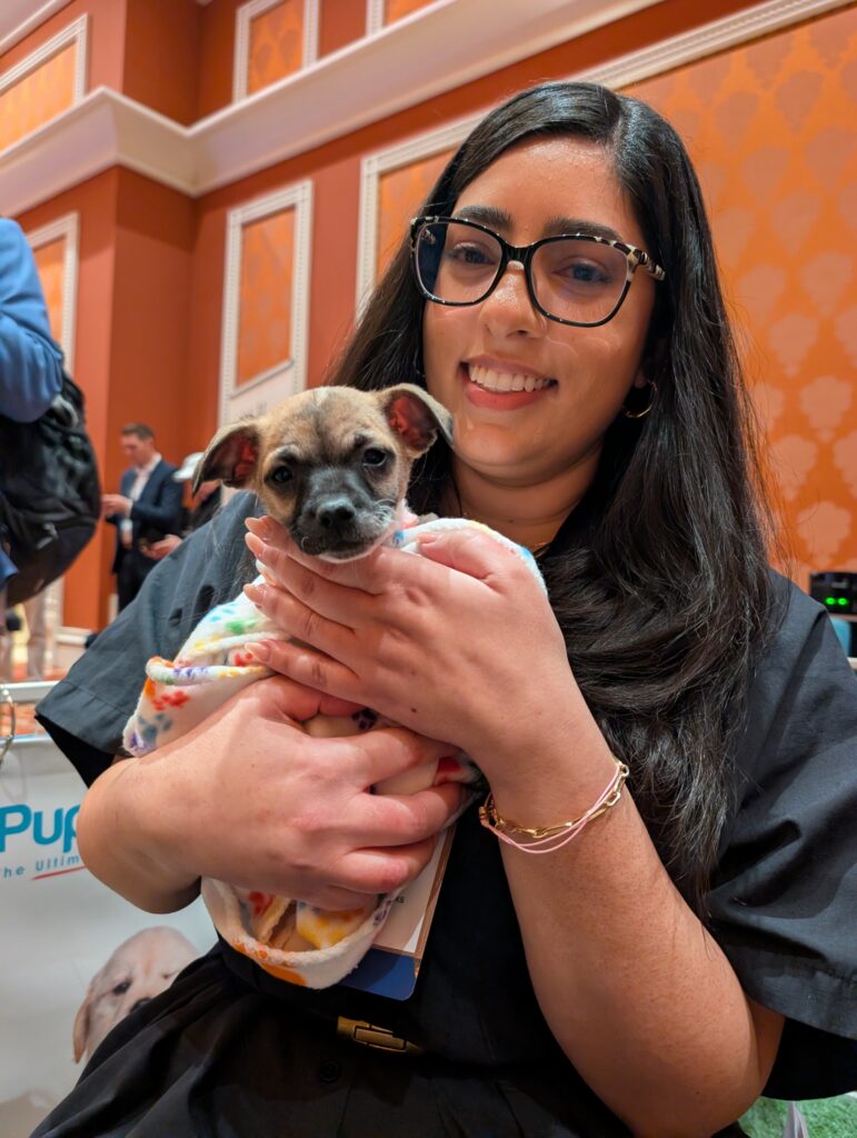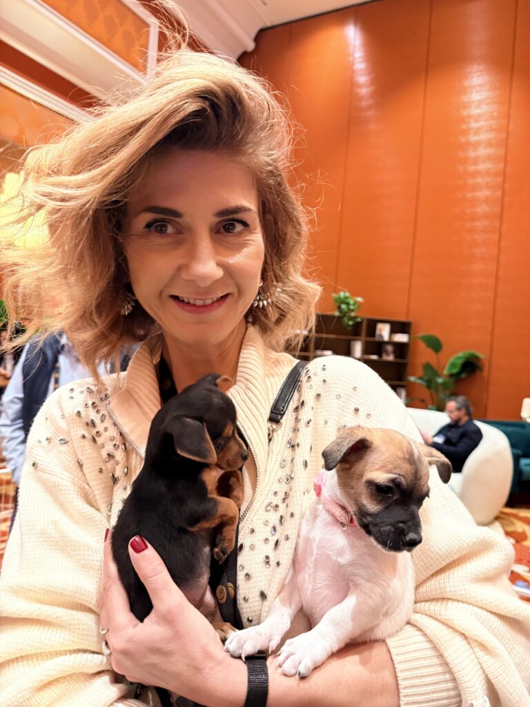 Many guests shared how much they missed their own pets back home. One attendee cradled a Chihuahua mix and said, “I miss my own dog so much; I’m so glad I got to hold a puppy today.” In a room filled with seasoned investors and global leaders, that simple statement captured the universality of the human-animal bond.