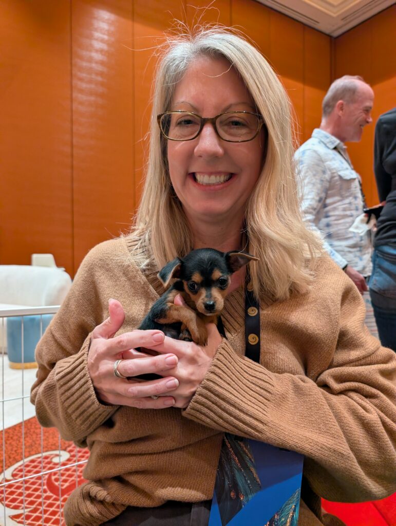 While attendees enjoyed a dopamine-rich reset during a packed agenda, the benefits extended to the pups as well. Each interaction provided essential socialization in a professional environment, building confidence and trust. These experiences are critical steps on the journey toward permanent homes, helping rescue dogs become comfortable with new sights, sounds, and people.